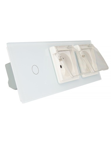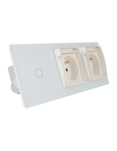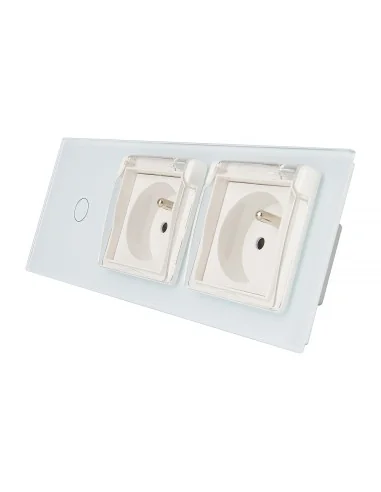 Włącznik dotykowy pojedynczy + dwa gniazdka hermetyczne LIVOLO z bolcem 701GG Biały
