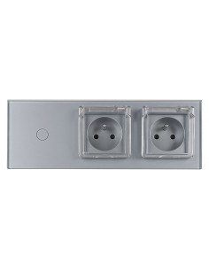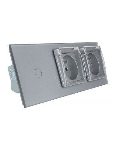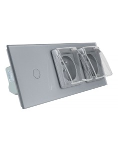 Włącznik dotykowy pojedynczy + dwa gniazdka hermetyczne LIVOLO z bolcem 701GG Szary