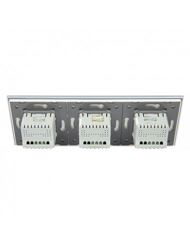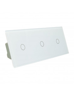 Zestaw składa się z eleganckiego, szklanego panelu dotykowego Livolo oraz trzech mechanizmów włącznika pojedynczego Livolo WW-C701.