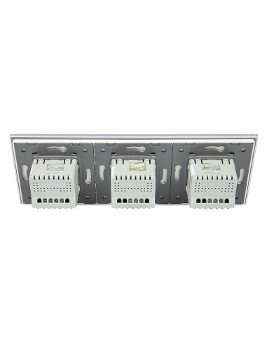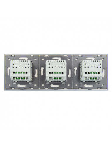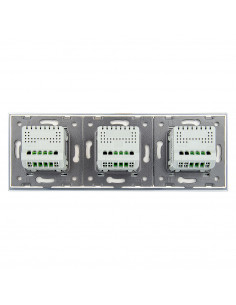 Zestaw składa się z eleganckiego, szklanego panelu dotykowego Livolo, dwóch mechanizmów włącznika pojedynczego WW-C701 oraz jednego mechanizmu włącznika podwójnego Livolo WW-C702 (świecznikowego).
