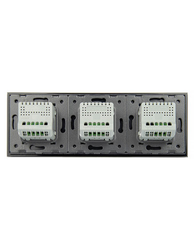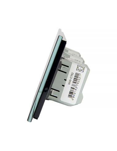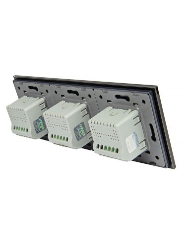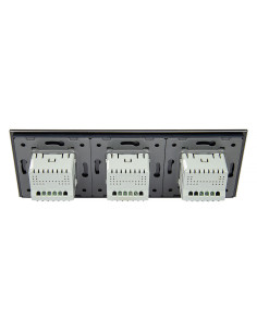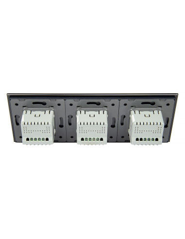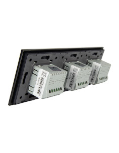 Zestaw składa się z eleganckiego, szklanego panelu dotykowego Livolo, jednego mechanizmu włącznika pojedynczego WW-C701 oraz dwóch mechanizmów włącznika podwójnego Livolo WW-C702 (świecznikowych).