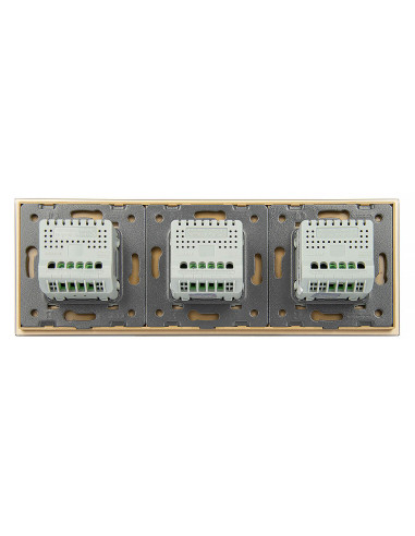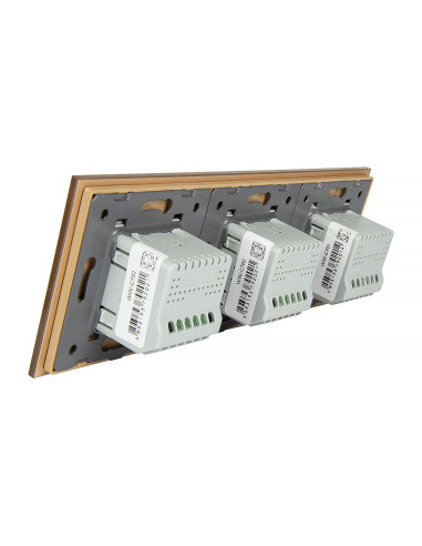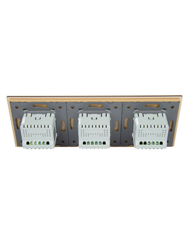 Zestaw składa się z eleganckiego, szklanego panelu dotykowego Livolo, jednego mechanizmu włącznika pojedynczego WW-C701 oraz dwóch mechanizmów włącznika podwójnego Livolo WW-C702 (świecznikowych).
