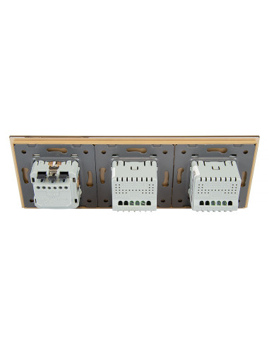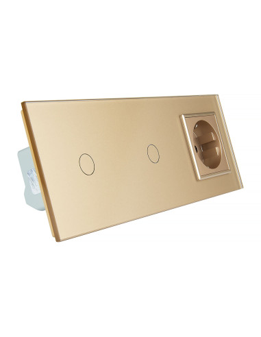 Włącznik dotykowy potrójny z gniazdkiem LIVOLO VL-C7011G Złoty