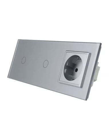 Włącznik dotykowy potrójny z gniazdkiem LIVOLO VL-C7011G Szary