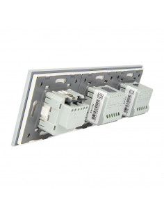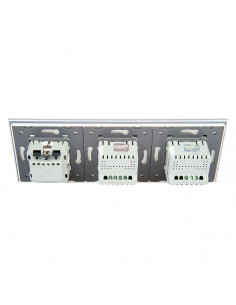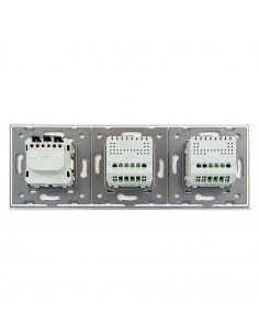 Takie rozwiązanie pozwala na kontrolę aż trzech niezależnych źródeł światła oraz podłączenie jednej wtyczki, a to wszystko za pomocą jednego, zintegrowanego panelu szklanego, który łączy w sobie nowoczesny design, wygodę użytkowania i funkcjonalność. Całość mieści się w trzech puszkach elektrycznych o standardowym rozstawie lub w jednej zespolonej puszce na 3 mechanizmy. Gniazdko posiada boczne uziemienie Schuko, które jest kompatybilne ze wszystkimi wtyczkami dostępnymi na rynku europejskim.