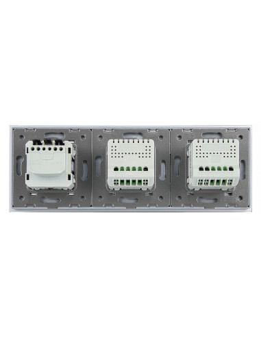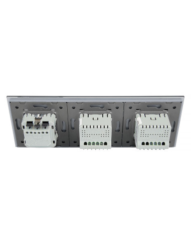 Takie rozwiązanie pozwala na kontrolę aż trzech niezależnych źródeł światła oraz podłączenie jednej wtyczki, a to wszystko za pomocą jednego, zintegrowanego panelu szklanego, który łączy w sobie nowoczesny design, wygodę użytkowania i funkcjonalność. Całość mieści się w trzech puszkach elektrycznych o standardowym rozstawie lub w jednej zespolonej puszce na 3 mechanizmy. Gniazdko posiada boczne uziemienie Schuko, które jest kompatybilne ze wszystkimi wtyczkami dostępnymi na rynku europejskim.