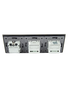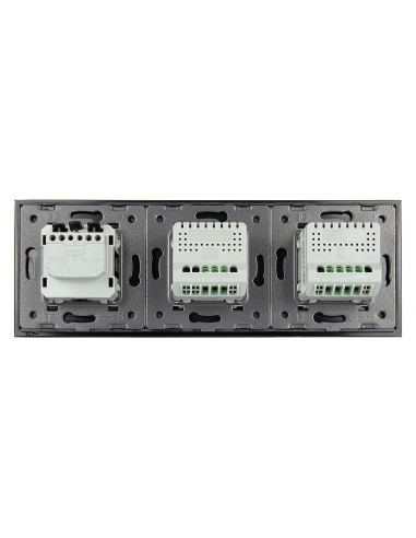 To rozwiązanie umożliwia sterowanie aż trzema niezależnymi źródłami światła oraz podłączenie jednego urządzenia elektrycznego, wszystko za pomocą jednego, eleganckiego panelu szklanego. Panel ten łączy w sobie nowoczesny design, wysoką funkcjonalność i komfort użytkowania. Całość można zamontować w trzech standardowych puszkach elektrycznych z typowym rozstawem lub w jednej, zespolonej puszce na trzy mechanizmy. Gniazdko wyposażono w boczne uziemienie typu Schuko, kompatybilne ze wszystkimi wtyczkami stosowanymi na rynku europejskim.