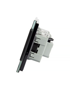 Takie rozwiązanie pozwala na kontrolę czterech niezależnych źródeł światła oraz podłączenie jednej wtyczki, a to wszystko za pomocą jednego, zintegrowanego panelu szklanego, który łączy w sobie nowoczesny design, wygodę użytkowania i funkcjonalność. Takie rozwiązanie może sprawdzić się w kuchni, łazience czy w sypialni przy łóżku - czyli wszędzie tam, gdzie potrzebny jest dostęp do światła oraz gniazdka do podłączenia różnego rodzaju sprzętów czy ładowarek. Całość mieści się w trzech puszkach elektrycznych o standardowym rozstawie lub w jednej zespolonej puszce na 3 mechanizmy. Gniazdko posiada uziemienie boczne typu Schuko, pasujące do każdej wtyczki.