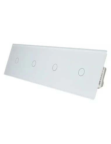 Zestaw składa się z eleganckiego, szklanego panelu dotykowego Livolo oraz czterech mechanizmów włącznika pojedynczego Livolo WW-C701.